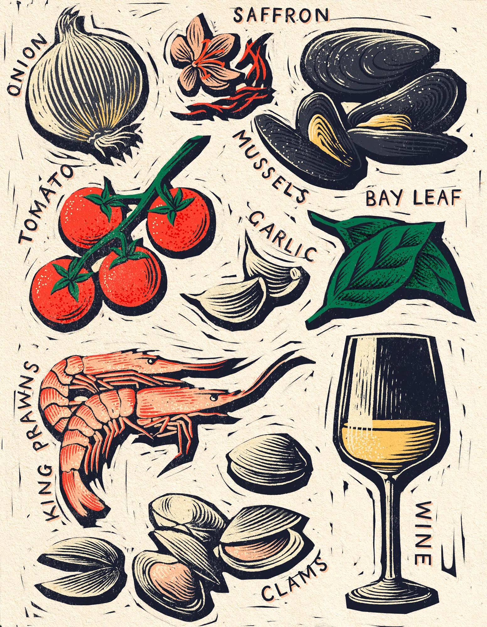 Ella also trained at London print studio, where she developed her printmaking skills in lino cutting, etching, and screen-print. These print techniques have heavily influenced her work and she can effectively recreate digital illustrations in these styles.