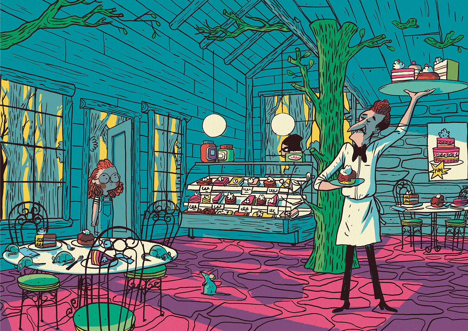 When Andrés isn’t in the studio illustrating,  he can be found creating murals and live illustrations and is a talented painter.